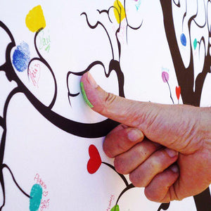 Im Gegensatz zu einem herkömmlichen Gästebuch, das vielleicht nur selten angesehen wird, ist ein Fingerabdruck-Baum dazu bestimmt, an der Wand aufgehängt zu werden. Als dauerhaftes Kunstwerk wird er Sie täglich an die Liebe und Unterstützung Ihrer Familie und Freunde erinnern.