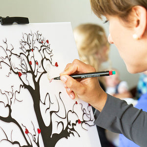 Ihre Gäste werden es genießen, kreativ zu sein, indem sie entscheiden, wo ihr Fingerabdruck auf der Leinwand am besten passt. Einige mögen es neben denen von Freunden platzieren, während andere einen ganz neuen Zweig beginnen könnten. Diese kreativen Entscheidungen tragen zum Charme und zur Einzigartigkeit Ihres Fingerabdruck-Baums bei.