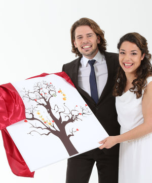 Zur Individualisierung des Wedding Trees können Sie sowohl die Namen des Brautpaars, als auch das Datum der Hochzeit aufdrucken lassen.