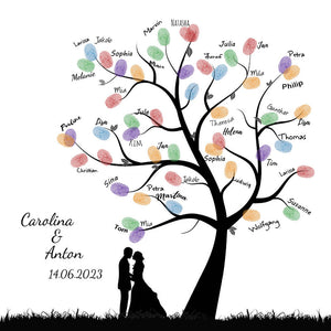 Die Hochzeitsgäste verewigen sich mit ihren Fingerabdrücken und Namen auf dem Wedding-Tree.