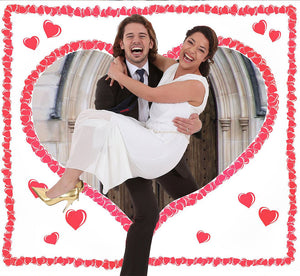 Das Brautpaar muß gemeinsam das Hochzeitsherz ausschneiden und dann hindurch schreiten.